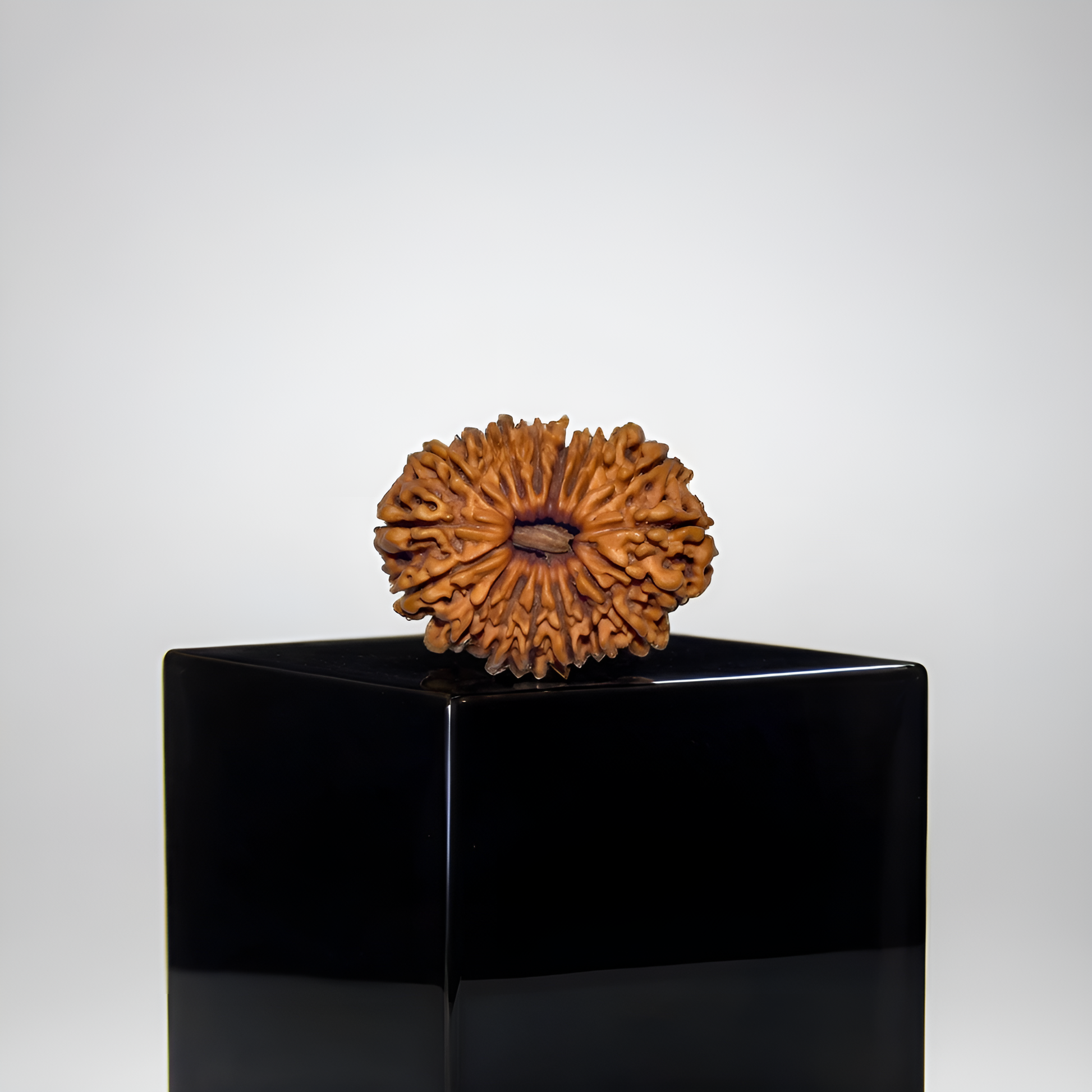 The 18 Mukhi Rudraksha is a rare and powerful bead governed by Mother Earth (Bhumi Devi), symbolizing abundance, nourishment, and grounding energy. It is especially beneficial for those involved in agriculture, real estate, business, and all forms of wealth creation. This sacred bead is believed to bless the wearer with prosperity, stability, and success in material pursuits, while also removing laziness, fear, and insecurity. The 18 Mukhi Rudraksha strengthens the root chakra, promoting emotional balance, physical vitality, and a deep connection with nature. It also acts as a shield against negative energies and misfortunes. Wearing this divine Rudraksha is said to attract wealth, ensure long-term growth, and bring blessings of health, strength, and divine protection.