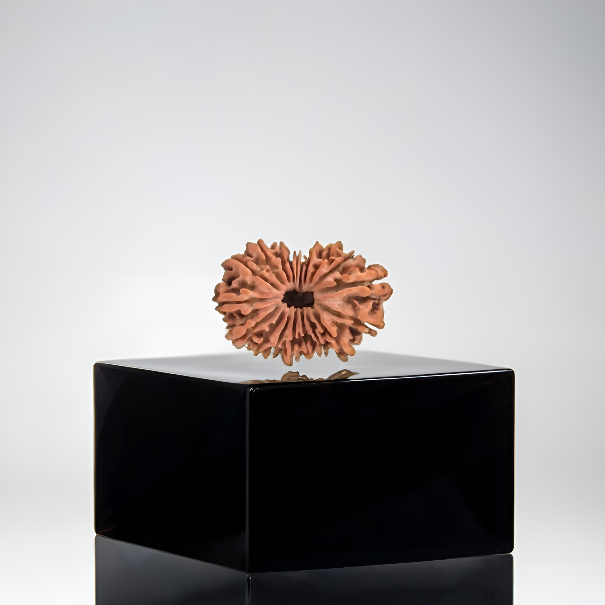 The 19 Mukhi Rudraksha is a rare and powerful bead blessed by Lord Narayan, the supreme form of Vishnu and the sustainer of the universe. Revered for its divine energy, this Rudraksha is known to fulfill all material desires and spiritual aspirations. It empowers the wearer with confidence, clarity, and success in all endeavors—be it business, relationships, or personal growth. The 19 Mukhi is believed to remove obstacles, attract wealth, and provide protection from negative influences. It balances the Vishuddha (throat) chakra, enhancing communication, creativity, and decision-making abilities. Ideal for leaders, entrepreneurs, and spiritual seekers, this Rudraksha opens the path to abundance and higher consciousness, making it a truly auspicious addition to any spiritual collection.