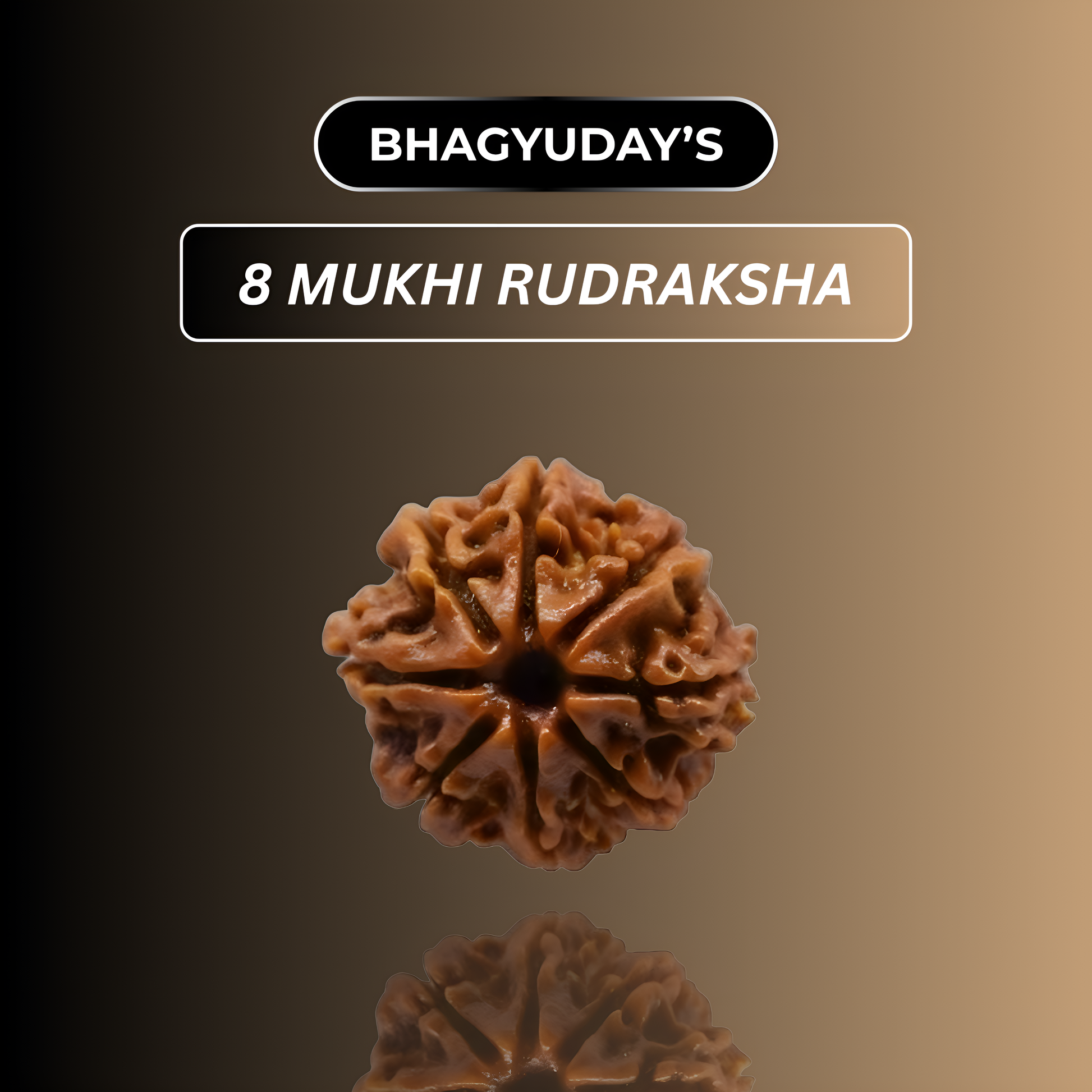 8 Mukhi Rudraksha is associated with Lord Ganesha, the remover of obstacles and the harbinger of wisdom and success. This powerful bead is known to bring mental clarity, focus, and the ability to overcome challenges with confidence. It is especially beneficial for those facing frequent hurdles in personal or professional life, as it helps eliminate negative energies and provides protection from unseen difficulties. The 8 Mukhi Rudraksha also strengthens intellect and communication skills, making it ideal for students, professionals, and those in leadership roles. By harmonizing the energies of the wearer, it enhances decision-making abilities and brings balance to one's spiritual and material pursuits. Wearing this Rudraksha is believed to pacify the malefic effects of Rahu and support a life of purpose, success, and spiritual growth.