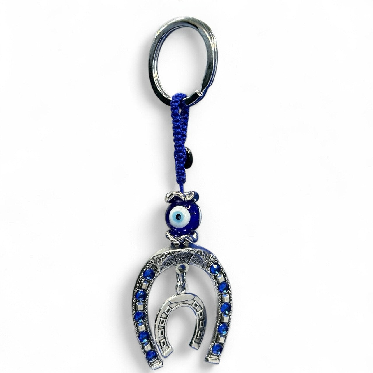 Bring positivity and protection wherever you go with this Blue Evil Eye Horseshoe Keychain. Designed with shimmering blue stones and a powerful Nazar charm, this good luck keyring shields against negative energy while adding an elegant touch to your bag, keys, or car. Perfect as a spiritual gift or lucky charm accessory.