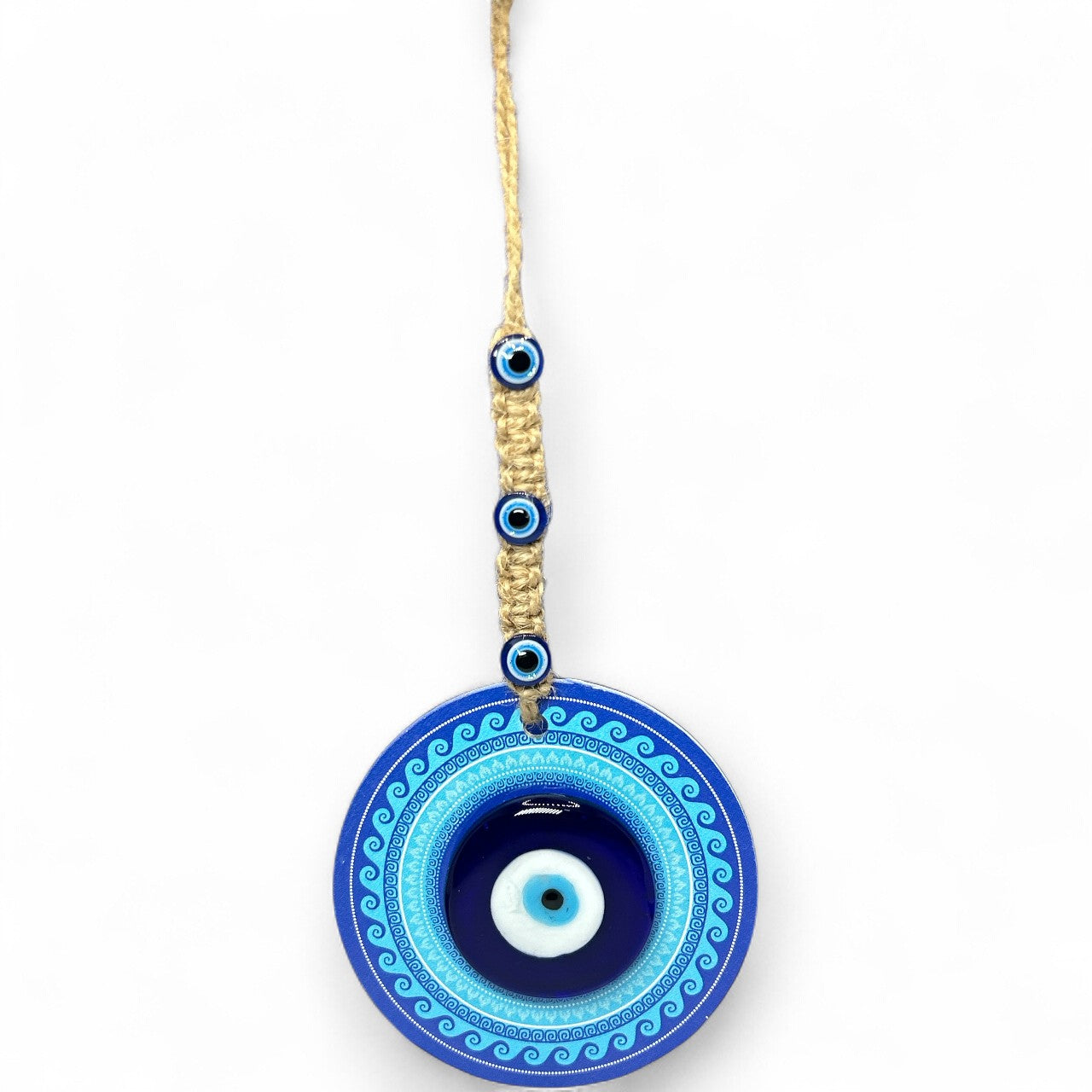 Invite peace, positivity, and protection into your space with this Blue Evil Eye Wall Hanging. Handcrafted with stunning blue glass and intricate design detailing, this Nazar wall decor is a powerful symbol believed to ward off negative energy and bring good luck. The natural rope accent gives it an earthy, elegant touch, making it perfect for home entrances, living rooms, or car interiors. A blend of tradition and style, this evil eye hanging enhances your decor while keeping your surroundings filled with positive energy and protection.