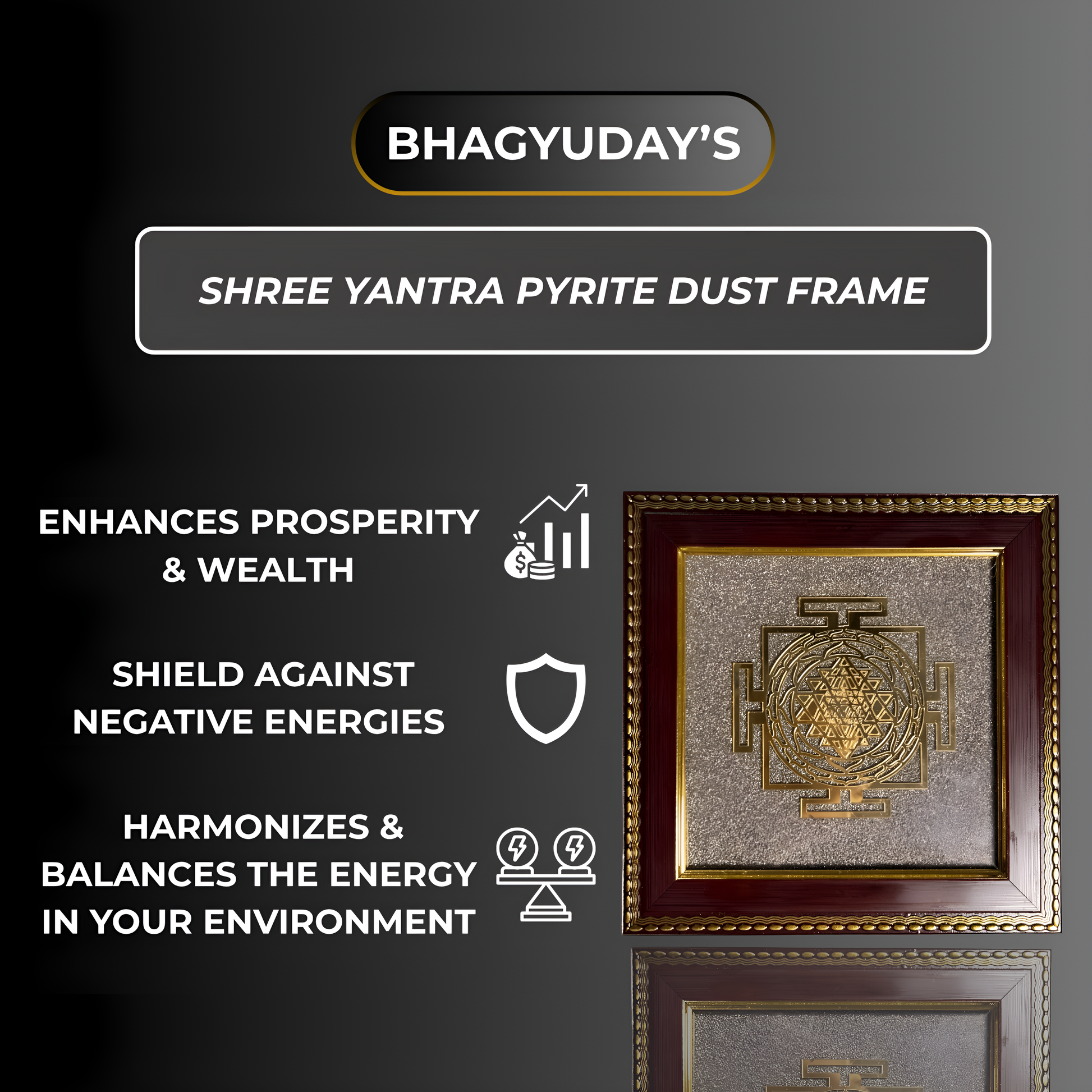 Introduce balance and abundance into your space with our Shree Yantra Pyrite Dust Frame. This frame features a sacred Yantra design made of genuine pyrite dust, known for its protective and prosperity-enhancing properties. Display it in your home or office for a harmonious and prosperous energy.